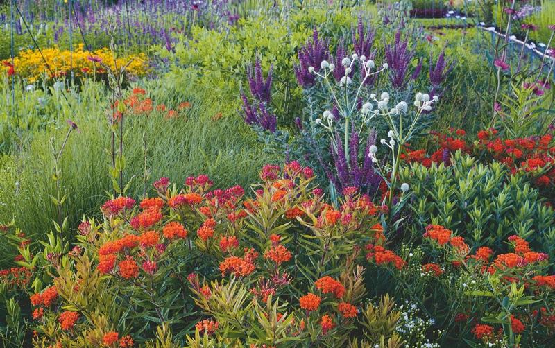 Le piante perenni della prateria come Asclepias tuberosa var.interior, Eryngium yuccifolium e Amorpha canescens sono ideali per le estati calde e secche Foto: Till Hofmann