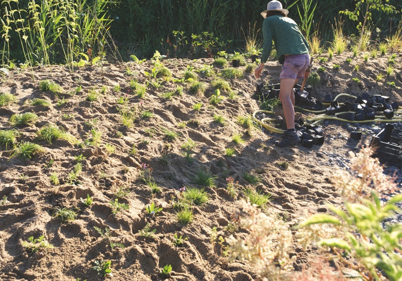 Distribuire in anticipo il pacciame di sabbia per le nuove piante. Attenzione quando si utilizzano macchine: la compattazione del terreno deve essere assolutamente evitata! Foto: Til Hofmann